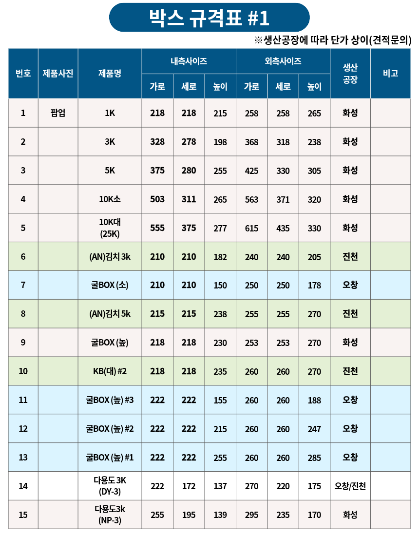 박스 규격표